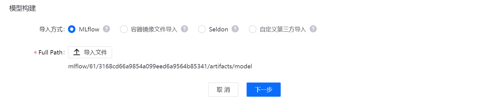 1. 如选择 MLflow 导入方式,通过以下步骤选择构建模型版本的文件: