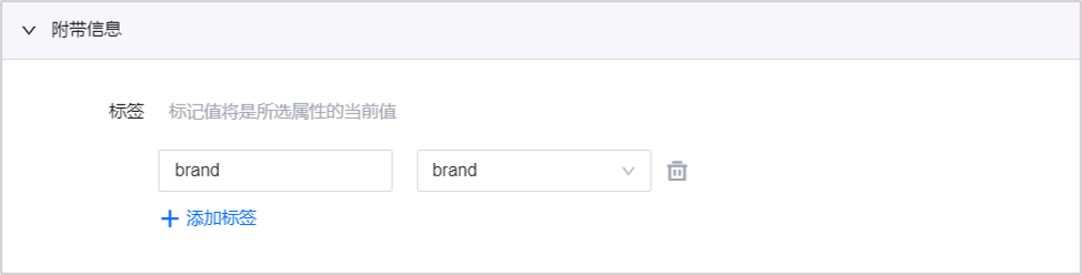 附带信息 部分让你根据 触发器设置 部分中选择的模型的属性值创建键值标签。通过输入标签的 Key 并从下拉列表中选择一个属性来创建标签,标签的 Value 将是该属性的当前值。