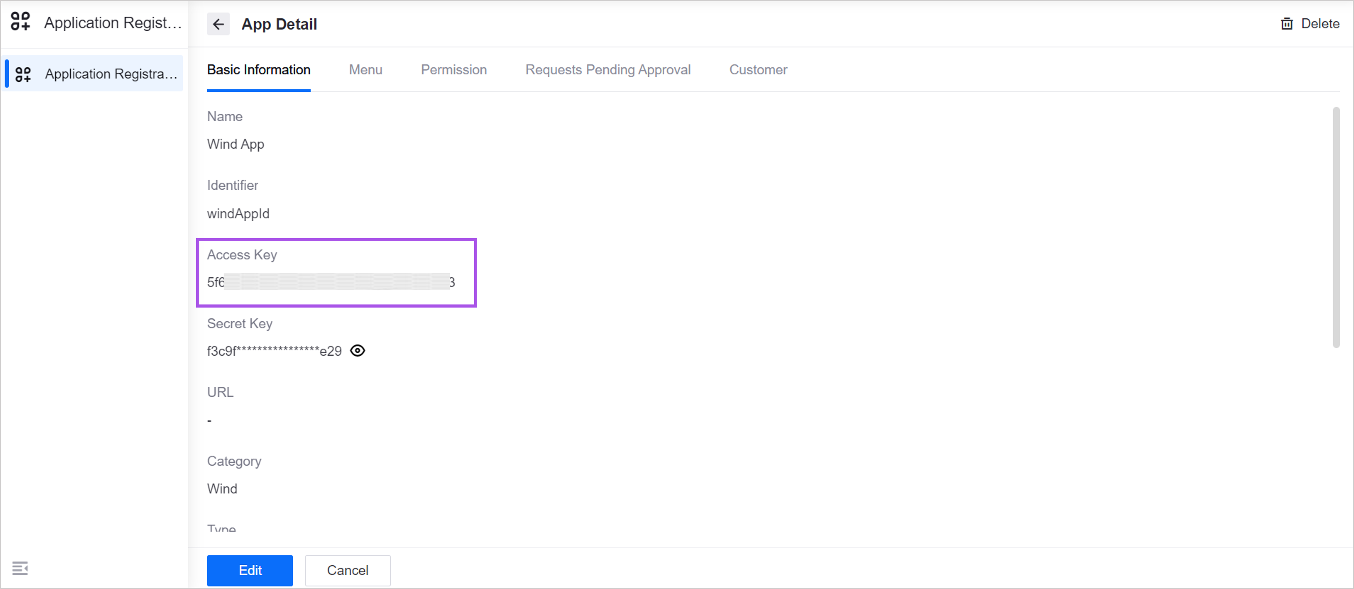 accessKey is the service account that EnOS assigns to the application for authentication purpose. To get the information, perform the following steps: