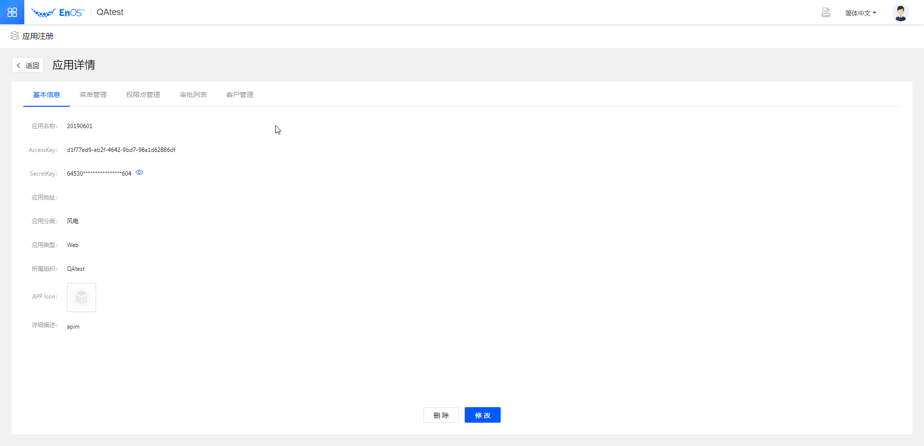 完成应用菜单创建后,可在菜单管理下查看和编辑。如下图所示: