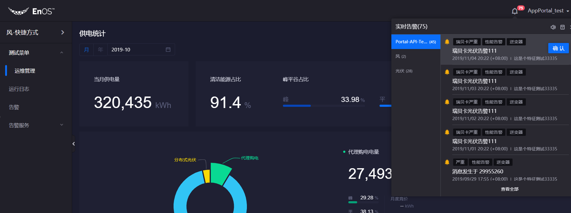 1. 登录到 Application Portal,然后点击页面右上角的响铃图标,打开 实时告警 窗口。
