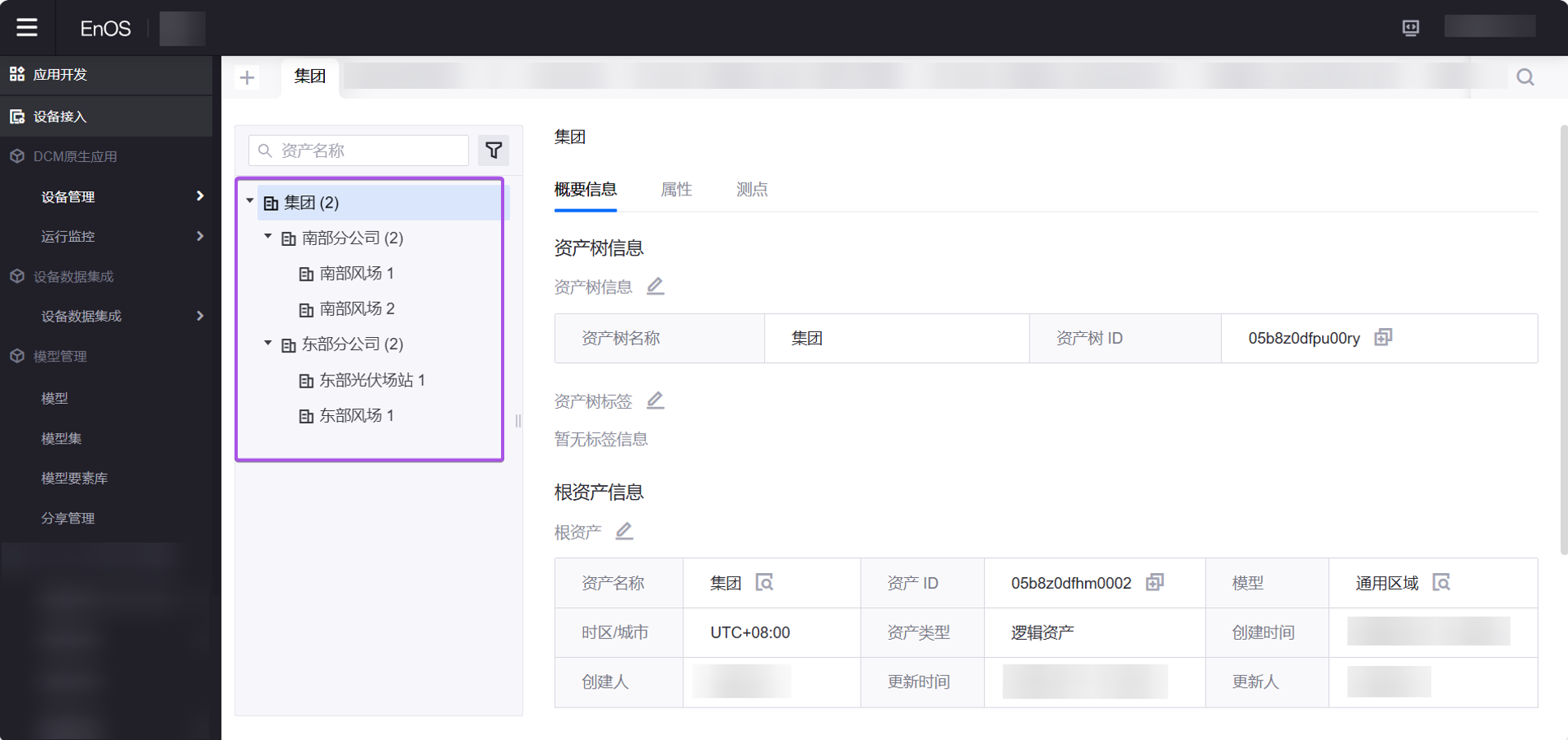 注:集团模型的资产ID可以在 设备接入 > 模型管理 > 模型 里面查到。