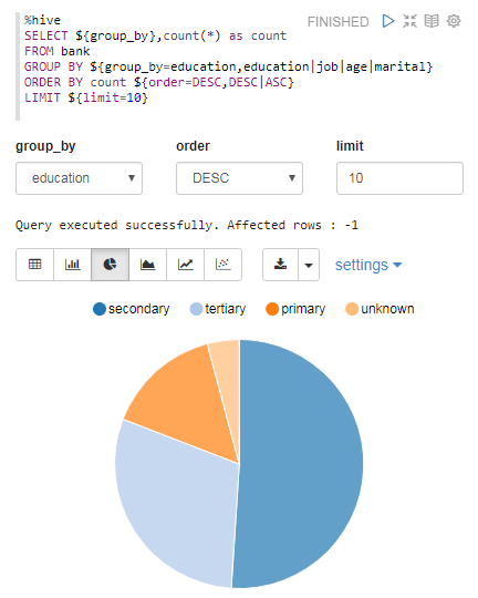 The following screenshot shows an example pie chart that visualizes the composition of a group of people in terms of education level.