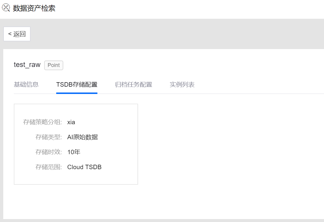 点击 TSDB存储配置 标签,查看为测点配置的TSDB存储策略,包括: