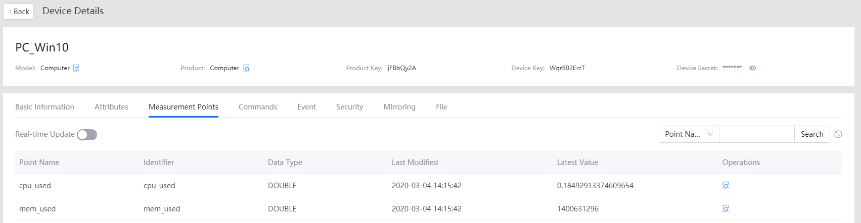 cpu_usedandmem_usedmeasurement points that have been posted to the Cloud under the Measurement Points tab at the Device Details page.
