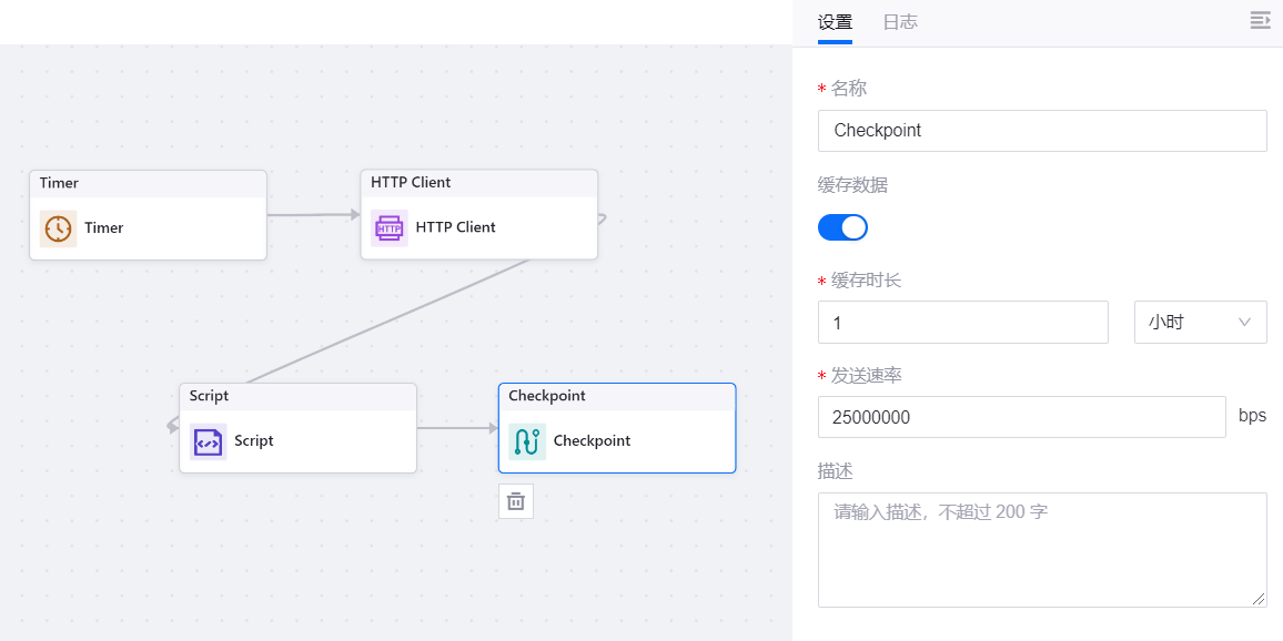 仅能在站端集成流中使用的 Checkpoint 节点在向云端发送数据失败时,支持发送缓存。