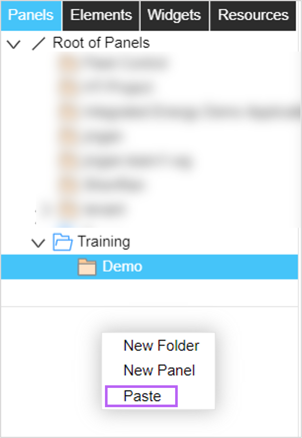panel_PureWater.zipandpanel_Valve.zipto import panels. Since the template contains panel path information, it will be automatically imported into the Training folder. If the Training folder does not exist in the current OU, it will be created automatically. For more information about importing panels, see Exporting and Importing panels.