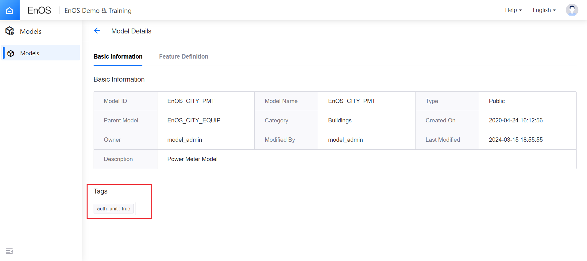 Model: Model of the required device, e.g., EnOS_CITY_IAQ. When configuring the data for the corresponding widgets later, you will need this model to be selected as the data source category.