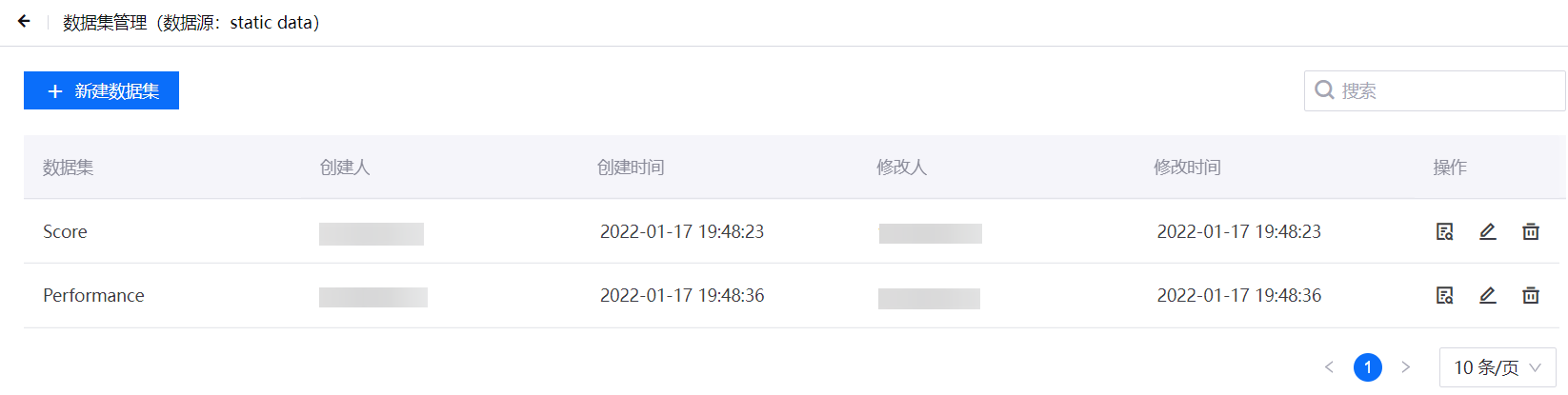 对于数据联邦和静态数据,需要创建数据集来定义要在 DTV 中使用的数据范围。