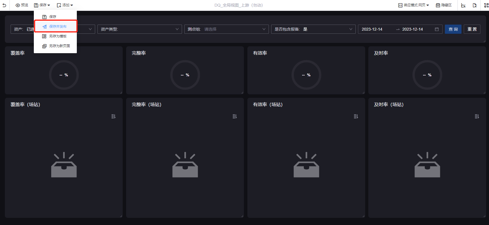 DTV 通过仪表盘页面组织可视化组件。通过以下步骤创建用于展示可视化组件和资产数据的仪表盘页面: