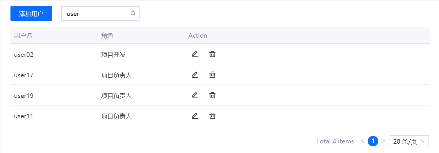 2. 点击 edit 按钮,更新项目成员的角色;或点击 delete 按钮,移除项目成员。成员被移除后,将无权限进入项目空间。