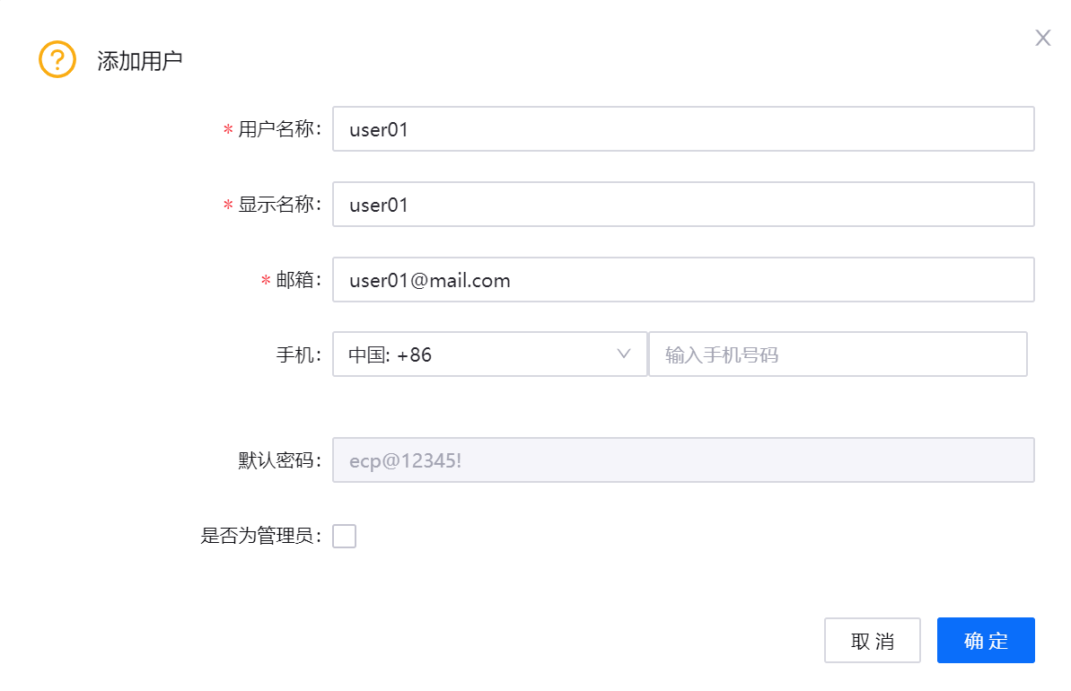 选择是否设定该用户为管理员,点击 确定,完成用户添加。