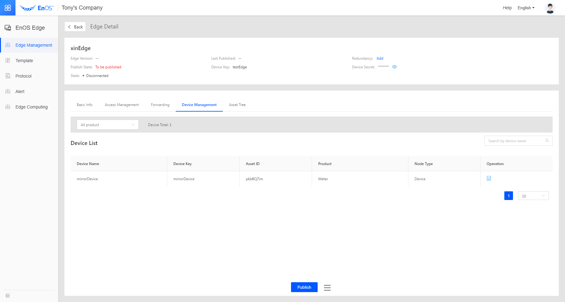 Integrating the device management function of EnOS Cloud so that users can jump to EnOS Cloud for specific device management tasks.