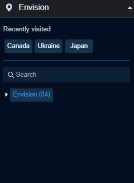 When you open another region or site map, the information on widgets and asset type statistics will also change accordingly.