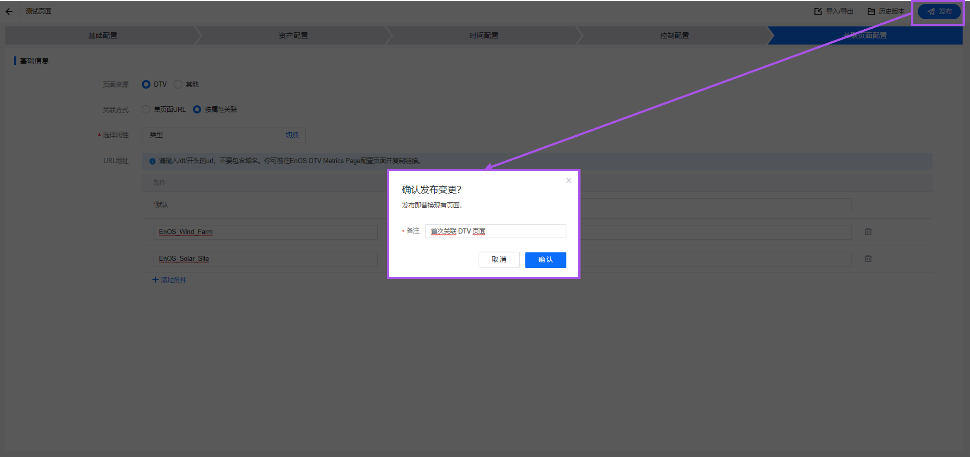 通过以下步骤将已发布的数字孪生可视化指标页面关联到 智能监测 > 多领域仪表盘 中: