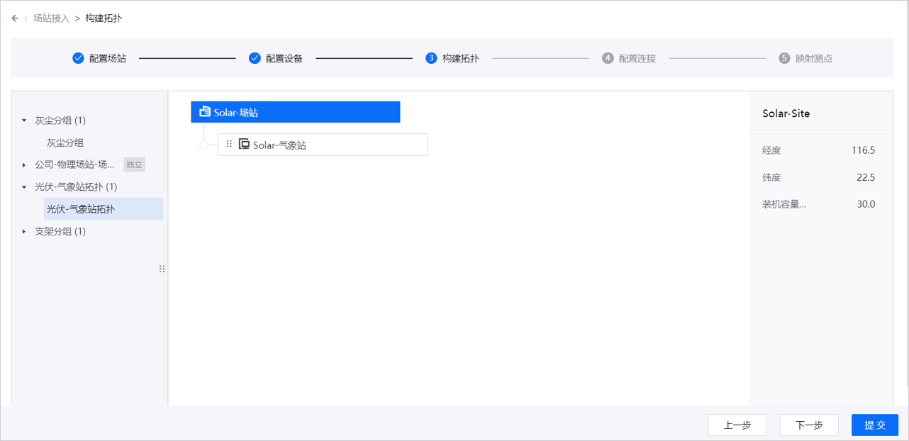 1. 选择 下一步,选择 Solar-场站 为顶层节点的挂载对象。