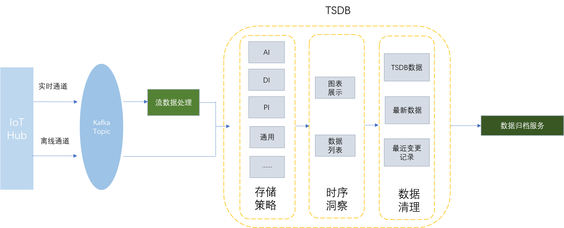 EnOS 时序数据库可对接收到的设备上传的实时数据、经流数据处理的数据、和通过离线通道整合的时序数据进行数据存储、数据洞察和数据清理。产品功能如下图所示: